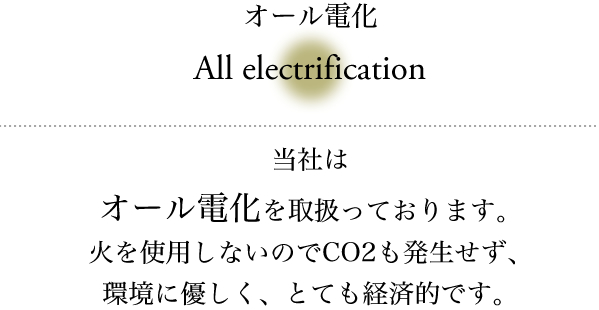 全て電気を使った「IHクッキングヒーター」「エコキュート」、地球環境や家計にも優しいシステムをご紹介いたします。