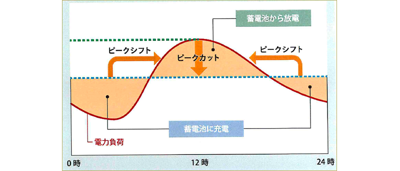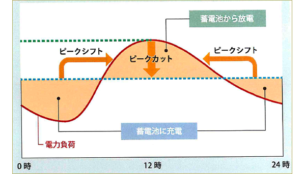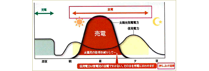 夜間に蓄電池に蓄えた安い電力を日中に放電して使います。