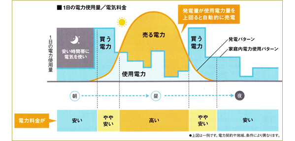 時間帯別電灯契約を利用すれば更にお得! 昼間の電気は高く売り、夜間は割安な電気を購入する事ができますので予想以上の経済効果を発揮します。